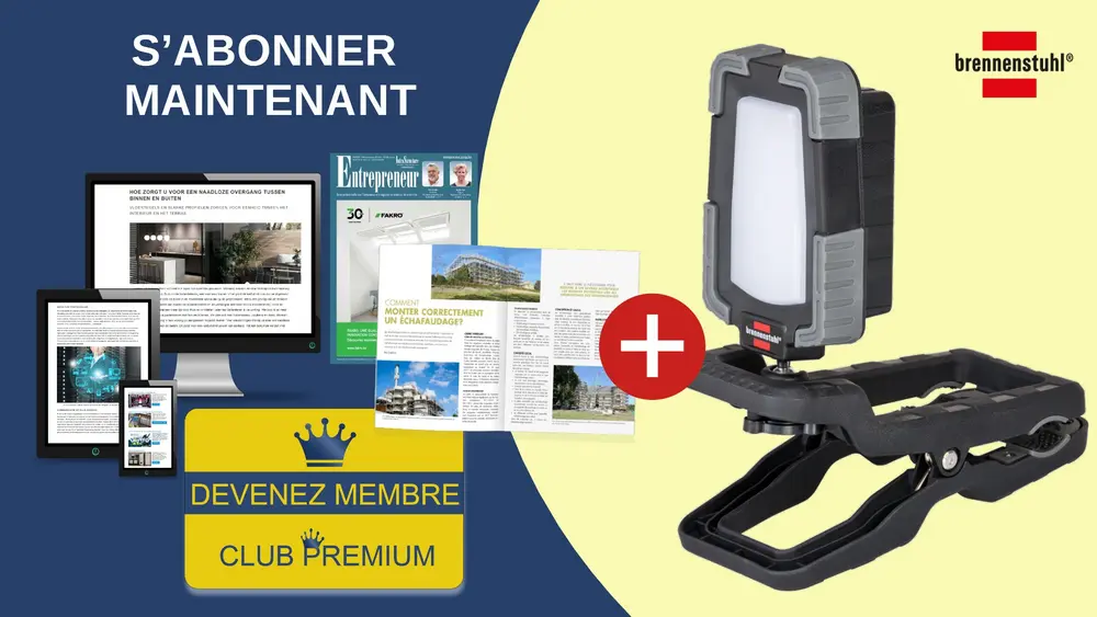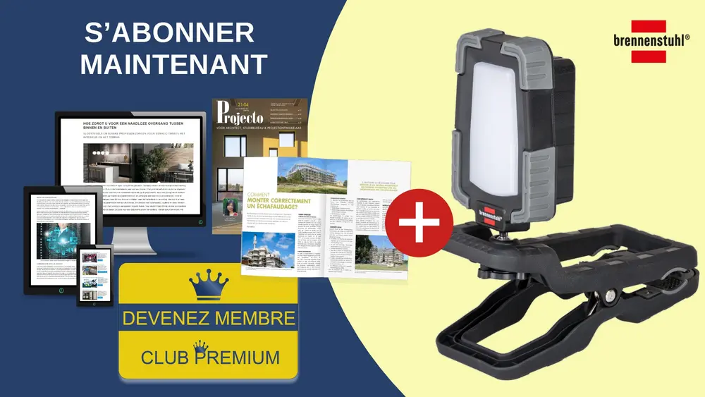 Souscrivez un abonnement print + en ligne à projecto de 12 mois et recevez gratuitement un projecteur de chantier LED (d'une valeur de 59 euros).
