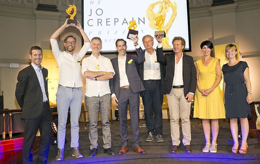 Op 22 juni werden de winnaars van de tweede Jo Crepain Prijzen bekendgemaakt. Callebaut-architecten mag zich het meest Beloftevol Startend Architectenbureau noemen. OMGEVING ging, onder andere dankzij de unieke organisatiestructuur als coöperatieve, met de prijs voor Innovatief Architectenbureau aan de haal, en de Carrièreprijs was voor het duo Ralf Coussée en Klaas Goris. “Twee authentieke en collegiale architectuurpersoonlijkheden die een rechte en ethische lijn aanhouden in alles, van hun innovatieve architectuur tot hun bedrijfsvoering, hun engagement in het onderwijs, enzovoort”, aldus Luc Binst. De uitreiking vond plaats tijdens een wervelende show in de Aula Academica van UGent. De Jo Crepain Prijzen werden voor het eerst uitgereikt in 2013. Na vier jaar pauze wil NAV voortaan elke twee jaar vernieuwende bureaus in the picture zetten.