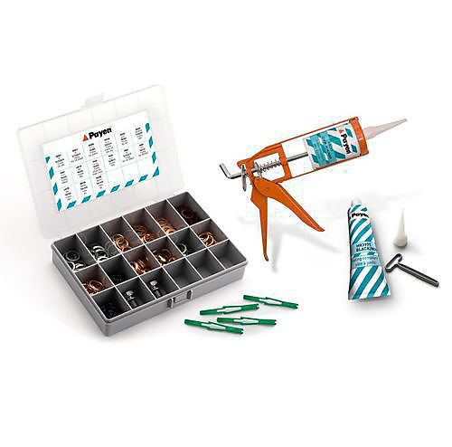 Het assortiment biedt installateurs en motorbouwers een volledig aanbod van alle Payen professionele service producten onder één keurmerk. Het garandeert de kwaliteit van alle gereedschappen en materialen om een snelle en nauwkeurige montage volgens de OE-norm mogelijk te maken tegen een scherpe prijs. De Payen Pro-Fit-serie bevat een universeel afdichtingsmiddel en een compact applicatiepistool voor handig gebruik. Het middel hecht in alle verbrandingsmotoren op elk oppervlak en is bestand tegen temperaturen tot 300°C. De Wellseal voegverbinding, beschikbaar in buizen als in patronen, maakt ook deel uit van de Pro-Fit serie, waarbij zorgvuldig rekening is gehouden met de samenstelling van het Pro-Fit assortiment.