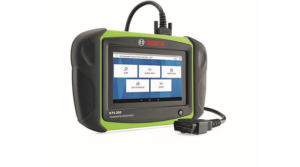 Bosch lanceert een nieuwe diagnosetester. Deze nieuwe diagnosetester onderscheidt zich door zijn hoge gebruiksvriendelijkheid. Een nieuwe, Android-gebaseerde gebruikersinterface ondersteunt de gebruiker. Uitgerust met de Bosch ESI[tronic]-werkplaatssoftware kan de KTS 250 een complete stuurapparaat diagnose op bijna elk type personenauto op de markt uitvoeren. De software dekt tot nu toe 150 automerken en is even uitgebreid en volledig als de ESI[tronic] 2.0 geïnstalleerd op de grotere diagnosetesters van Bosch. Dankzij de krachtige processor worden de programma’s snel geladen en de diagnoses direct uitgevoerd. Van zodra de KTS 250 op het voertuig wordt aangesloten, wordt de VIN-code automatisch uitgelezen en vindt een automatische voertuigidentificatie plaats op basis van de meest uitgebreide VIN-database op de markt. In een mum van tijd toont het compacte 7-inch aanraakscherm een overzicht van alle stuurapparaten die in het voertuig aanwezig zijn. Dankzij een resolutie van 1024 x 600 pixels worden tekst en afbeeldingen duidelijk en gemakkelijk leesbaar weergegeven. Eenmaal de KTS 250 via de meegeleverde OBD-kabel op het voertuig is aangesloten, is het uitlezen van foutcodes en actuele waarden van stuurapparaten mogelijk. Voor oudere voertuigen zijn specifieke OBD-adapterkabels beschikbaar. Via de printfunctie kunnen de resultaten op een printer aangesloten op het werkplaatsnetwerk geprint worden. De geïntegreerde lithium-ionbatterij voorziet het toestel van de nodige stroom. Tijdens het testen wordt de diagnosetester van stroom voorzien via de OBD-connector van het aangesloten voertuig. De KTS 250 ondersteunt DoIP (Diagnostics over Internet Protocol), de nieuwe Ethernet-gebaseerde diagnose-interface. DoIP laat veel hogere overdrachtsnelheden toe. Daarnaast laat de KTS een simultane parallelle communicatie met verschillende stuurapparaten via verschillende communicatiekanalen toe, wat resulteert in een snellere diagnose van alle stuurapparaten.