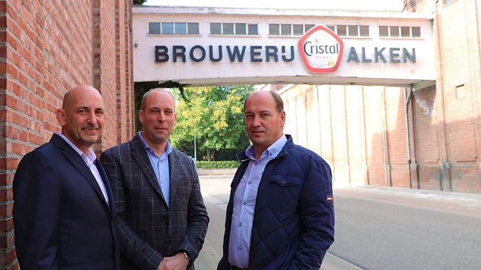 Dankzij een nieuw woonproject komt er – letterlijk – nieuw leven in de brouwerij van Alken-Maes. Het oude gisterijgebouw wordt al jarenlang niet meer gebruikt, maar krijgt nu dus een herbestemming. Het zal plaats bieden aan 39 nieuwbouwappartementen in loftstijl en een groene binnentuin. De historische elementen van de brouwerij, zoals de gevels en het iconische witte brugje, blijven daarbij wel integraal behouden. In het voorjaar van 2018 start de afbraak van het bestaande gebouw, daarna volgen de stabilisatiewerken en de bouwfase. Eind 2019 kunnen de eerste inwoners hun intrek nemen op de historische site. Op de foto: burgemeester van Alken Marc Penxten, Koen Vriens van bouwheer D-Build en architect Mark Bollen, tijdens de lancering van het woonproject.