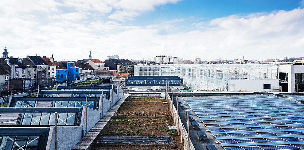 Met de installatie van de Abattoir stadsboerderij op het dak van de Foodmet op de site van het slachthuis van Anderlecht, zorgt de firma BIGH voor een wereldprimeur in urban farming met aquaponie. Toen in 2013 de constructie van een nieuwe voedingshal op de site van de slachthuizen in Anderlecht aanving, was dit het startschot voor de ontwikkeling van een groots project: het Masterplan Abattoir 2030. Dit ambitieus stadshernieuwingsplan voorzag de volledige herwaardering van de slachthuissite. De markthal is uitsluitend bestemd voor de verkoop van voedingswaren, zoals groenten, fruit, vis en vers vlees. Met de vestiging van de beenhouwers in de markthal heeft de consument rechtstreeks toegang tot vleeswaren, van dieren die ter plaatse geslacht werden. Abattoir nv, de eigenaar van de slachthuissite heeft dankzij een subsidie van EFRO (Europees Fonds voor Regionale Ontwikkeling) een bijkomende gelegenheid gekregen om deze filosofie nog verder door te trekken en een stadsboerderij te installeren. 4.000 m² van het dak van de Foodmet werd voorbestemd om ingericht te worden als urban farm met een tuin van 2.000 m² en een serre van 2.000 m² om vis, groenten en kruiden te kweken: een Europese primeur. De serre zal de restwarmte van het gebouw recupereren, evenals de CO2 die uitgestoten wordt door de technische installaties van de boerderij. Daarnaast is er ook een volledige opvang van het regenwater voorzien. Het energieverlies en de ecologische voetafdruk van het gebouw worden zo geoptimaliseerd volgens het principe van de circulaire economie. Een dergelijk urban farming project installeren was niet zonder uitdagingen. Een zeer specifieke werkmethode diende daarom samen met de technische diensten van Derbigum uitgewerkt te worden. Zo werd er op het bestaande dak een nieuwe onderlaag Derbicoat® HP geplaatst en een waterdichting Derbigum® GC 4 mm. Hierop werd vervolgens een nieuwe betonlaag gestort om de serre op te bouwen.