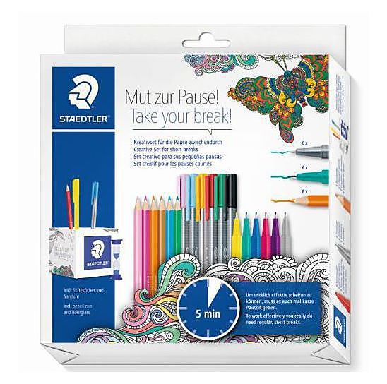 Staedtler lanceert de ‘Take Your Break – Colour Your Moments’ campagne. Hiermee wil men het kleuren stimuleren als een efficiënt onderdeel van de gezondheid van iedere werknemer. Kleuren is de ideale manier om een creatieve pauze te nemen en bovendien kan het zeer gemakkelijk geïntegreerd worden op de werkplaats. Het inkleuren van bepaalde patronen zorgt op een snelle en makkelijke manier om mentale blokkades te voorkomen en stress te verlagen. Met verschillende creatieve sets zorgt de producent voor ieder wat wils; van een standaard set met tekenblok, een set met een zandloper en een pennenhouder tot een set voor on-the-go. Meer informatie vind je op staedtler.com.
