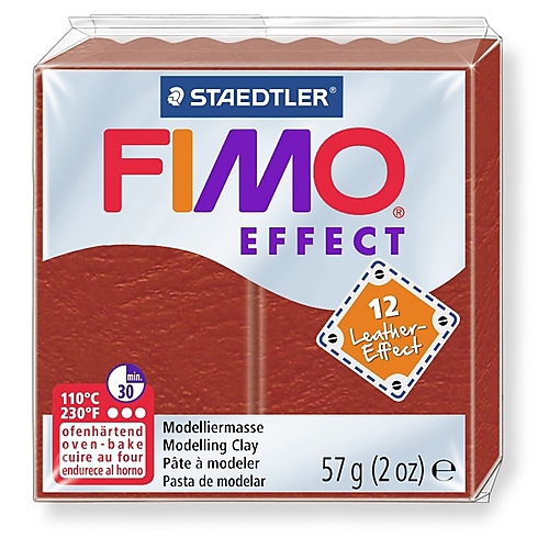 Het innovatieve effect van Fimo Leather zorgt voor geweldige en creatieve ideeën en modelleertechnieken. Beschikbaar in 12 kleuren. Na uitharden blijft het oppervlak de look en het gevoel van leder behouden. Dunne stukken zijn buigbaar en kunnen bewerkt worden. Geschikt voor juwelen, accessoires en home-decoratie.