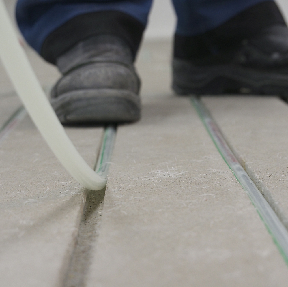 Met behulp van een gepatenteerde slijpmachine die het Nederlandse bedrijf JK Vloerverwarming zelf heeft ontwikkeld – de ‘Floorgrinder’ – kan ‘stofvrij’ een strak sleuvenpatroon in bijna elke soort chape worden geslepen. Daarin kunnen gemakkelijk de vloerverwarmingsbuizen – JK Flextubes – worden aangebracht. Dat wordt allemaal gedaan door de installateurs van JK, dus voor de HVAC-installateur rest enkel nog het correct aansluiten van de installatie op het primaire verwarmingssysteem. Omdat er bovenop de buizen geen extra opbouwlaag meer nodig is, zorgt het JK systeem niet alleen voor een aangename opwarming van de ruimte, maar reageert het ook sneller dan traditionele vloerverwarming.